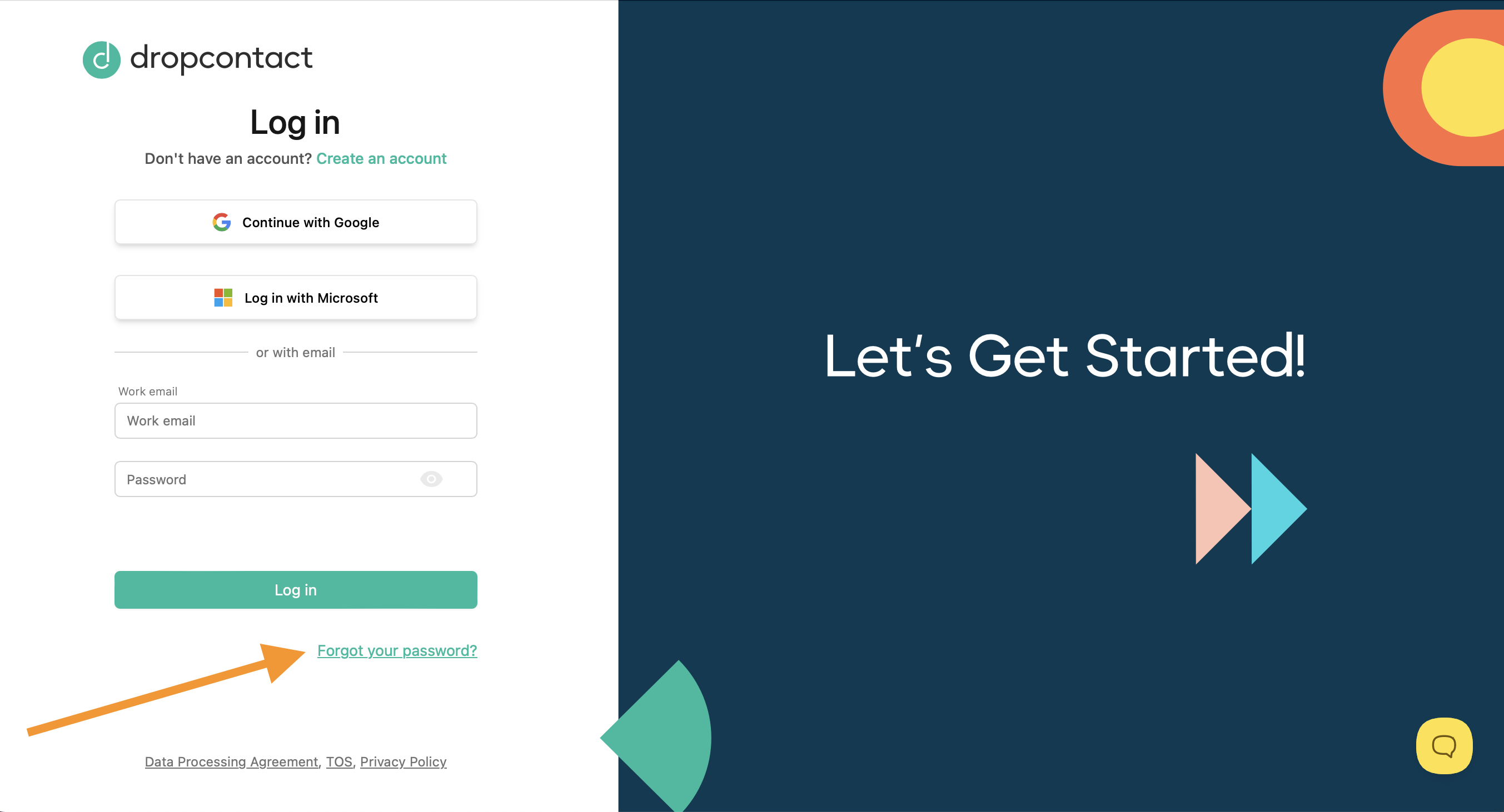 Go to the Dropcontact login page and click "Forgot your password?" below the login button.
