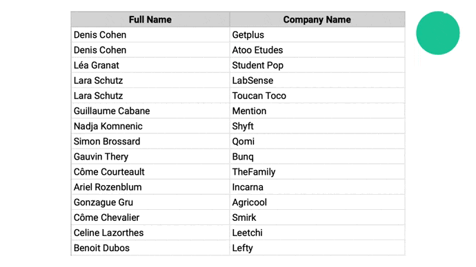 Dropcontact identifies when contacts have moved to a new company and enriches their records with updated information: new email, phone number, company website, and LinkedIn profiles.