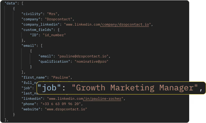 Integrate Dropcontact's API into your workflows to clean and classify job titles in real-time. Perfect for automated enrichment pipelines.